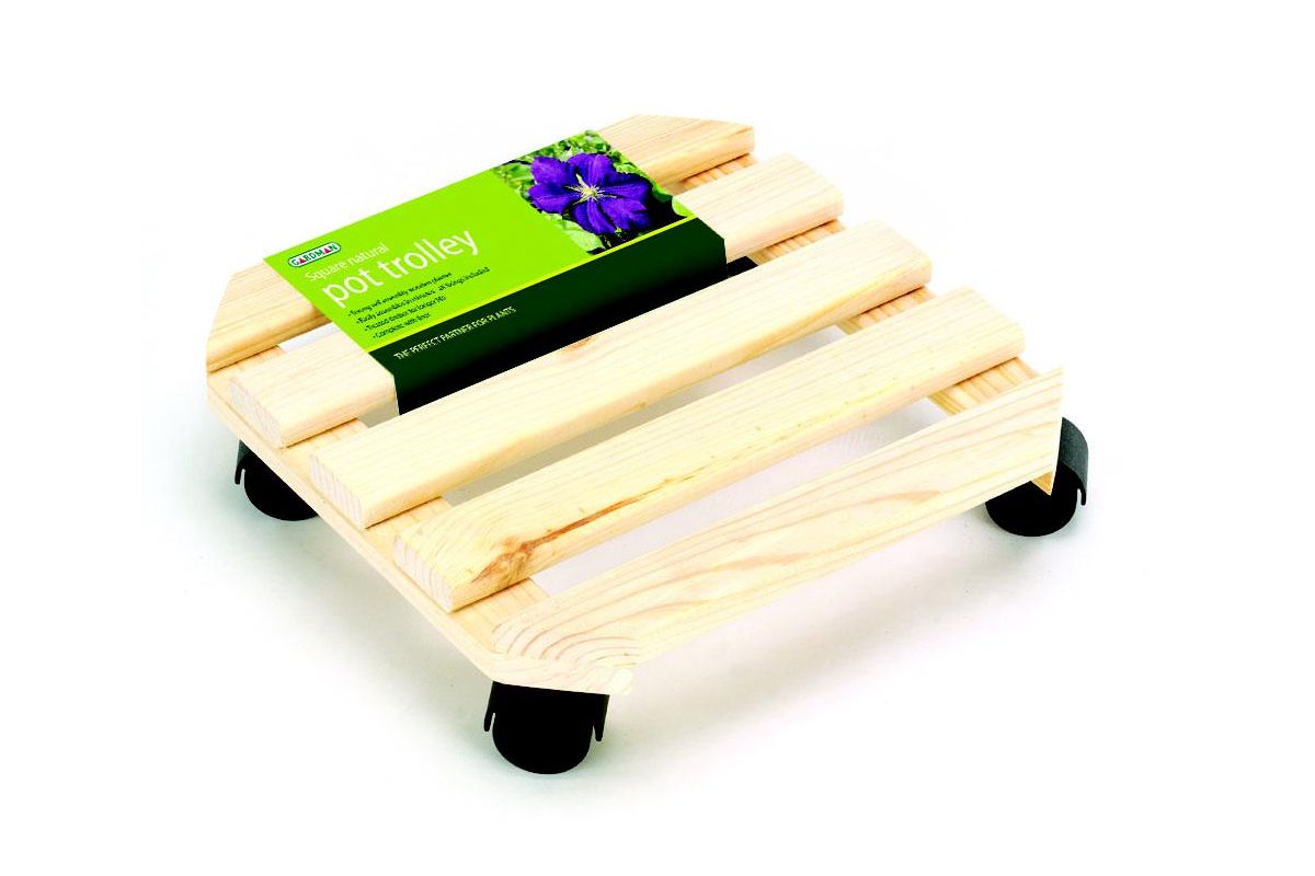 Подставка на колёсиках для горшков до 15 кг. Материал: древесина. Высота 12 см, ширина 30 см, диаметр 30 см.