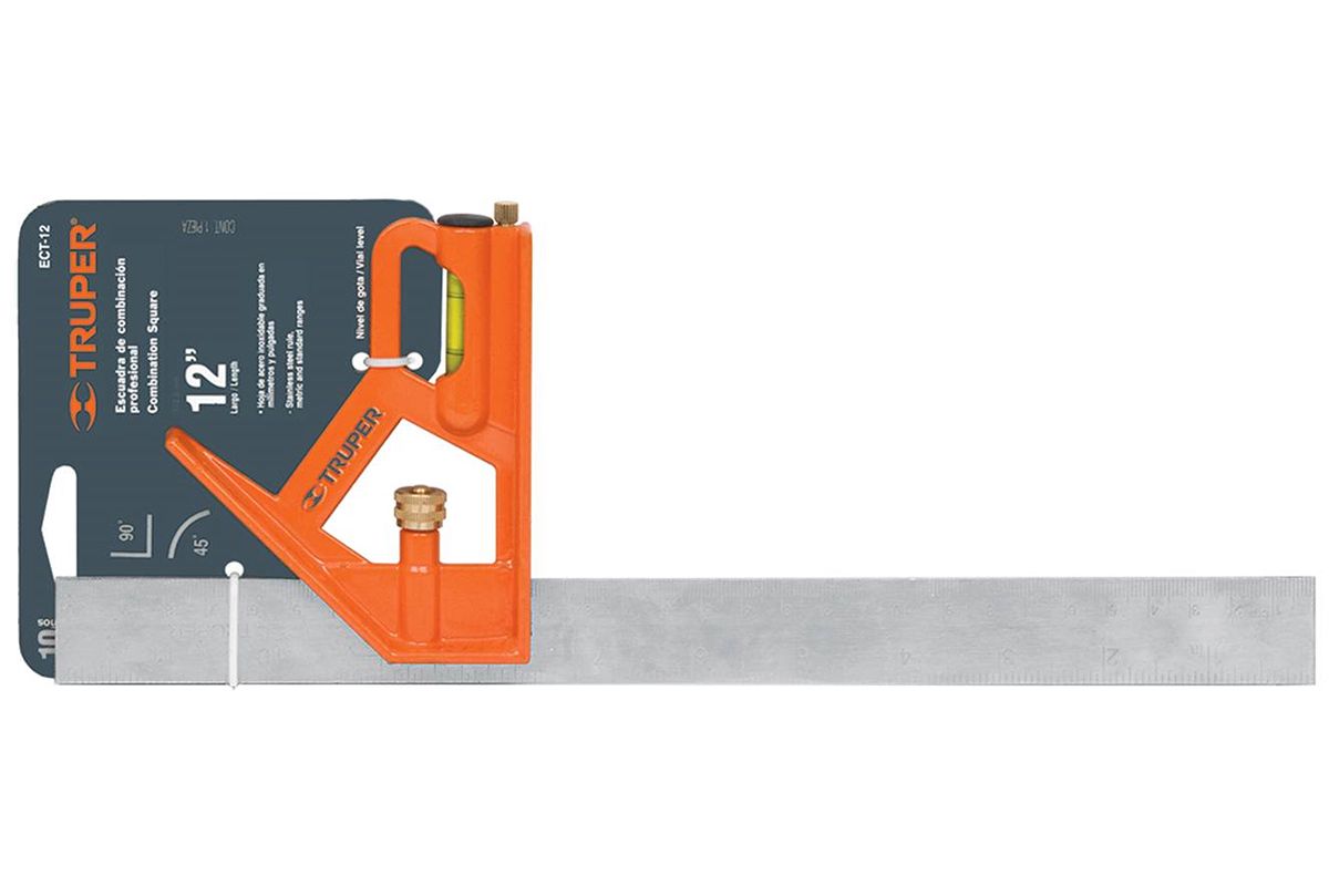 Угольник измерительный комбинированный ,встроенный уровень, чертилка, углы 90 и 45 ,полотно из нержавеющей стали,ручка из алюминия, гравировка