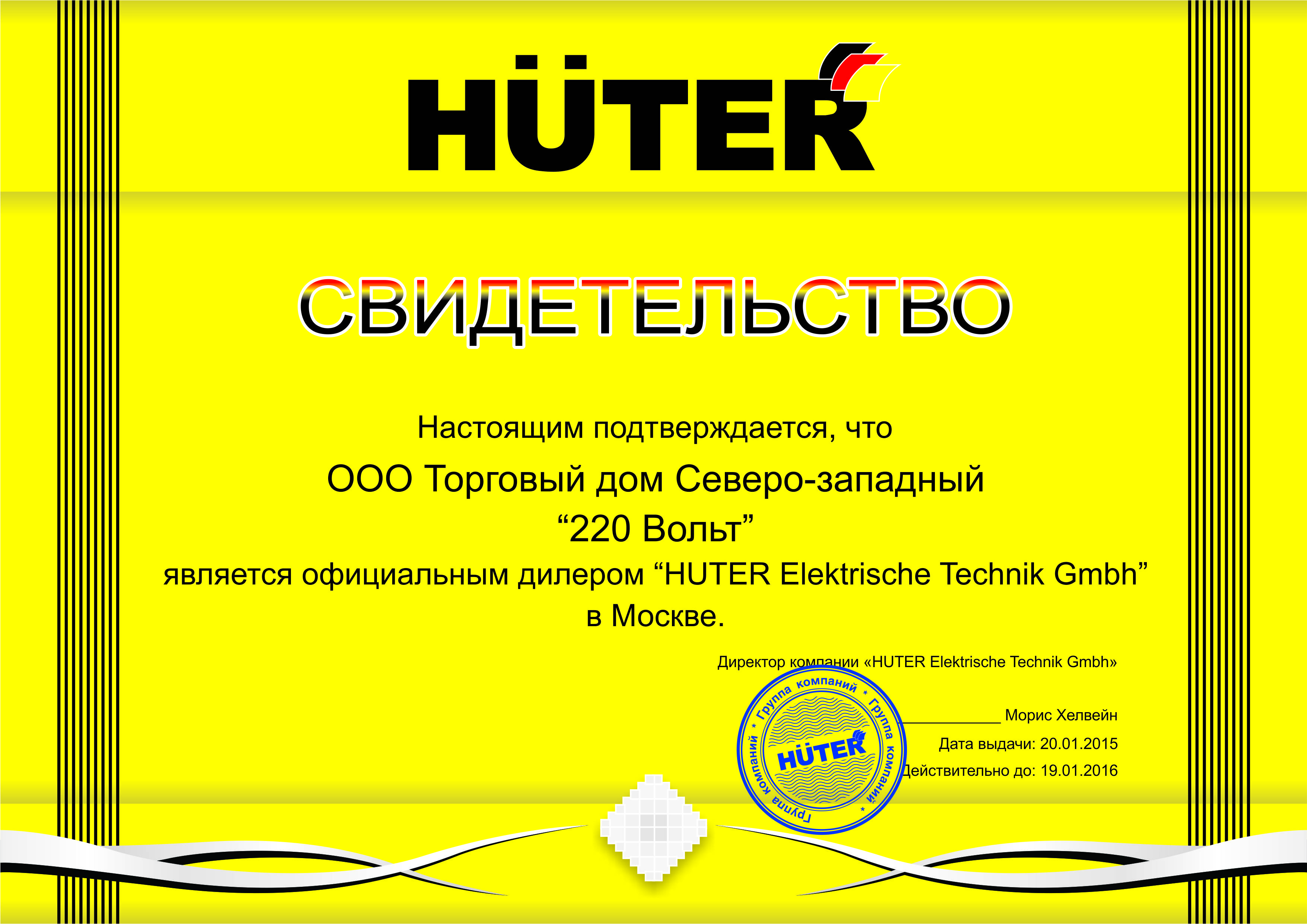 Известная торговая марка Huter занимает лидирующее место среди европейских брендов, продающих электрооборудование и садовую технику. Вся продукция выпускается немецкой компанией «Huter Elektrische Technik GmbH», вышедшей на российский рынок в 2004 г.